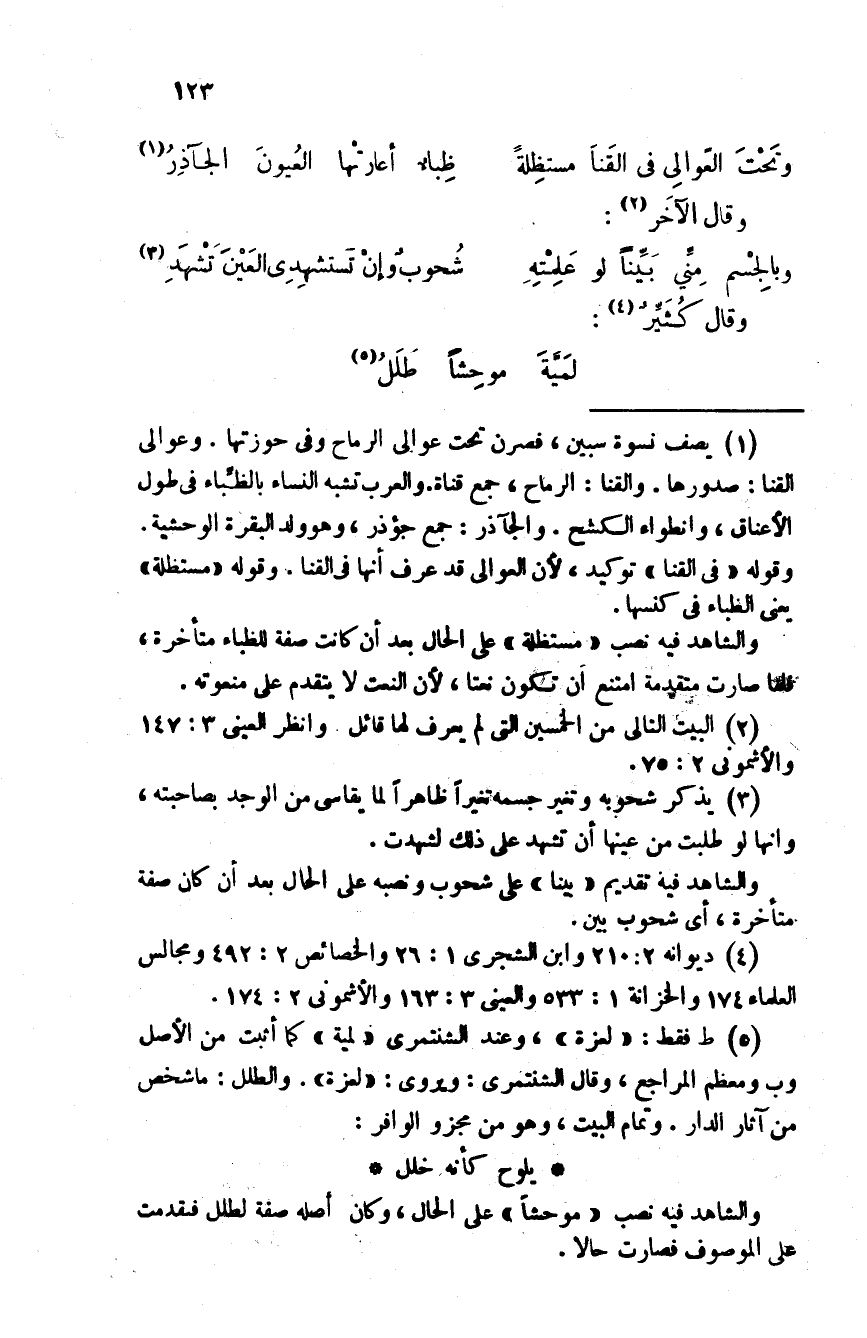 وقال كُثيّر: لمَيَّةَ موحِشاً طللُ