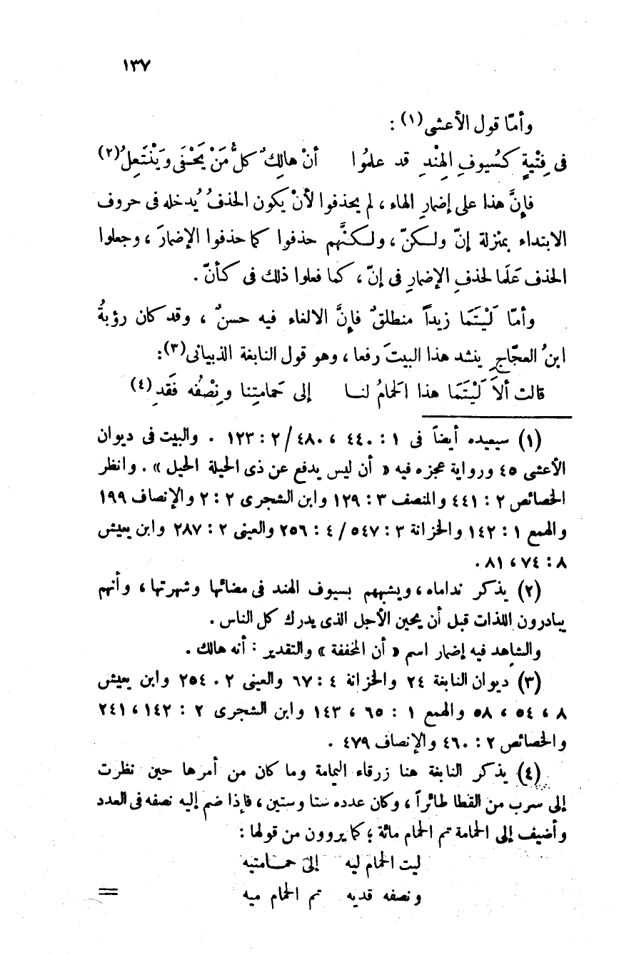فإن هذا على إضمار الهاء، لم يحذفوا لأنْ يكون الحذف يُدخله في حروف الابتداء بمنزلة إن ولكن، ولكنهم حذفوا كما حذفوا الإضمار، وجعلوا الحذف علَماً لحذف الإضمار في إن، كما فعلوا ذلك في كأن.