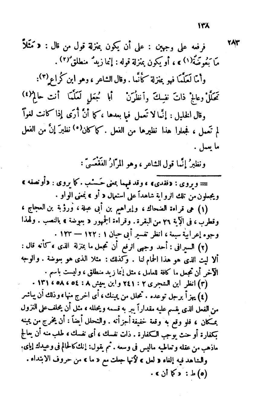 وقال الخليل: إنما لا تعمل فيما بعدها، كما أن أرى إذا كانت لغوا لم تعمل، فجعلوا هذا نظيرها من الفعل. كما كان نظيرَ إن من الفعل ما يعمل.