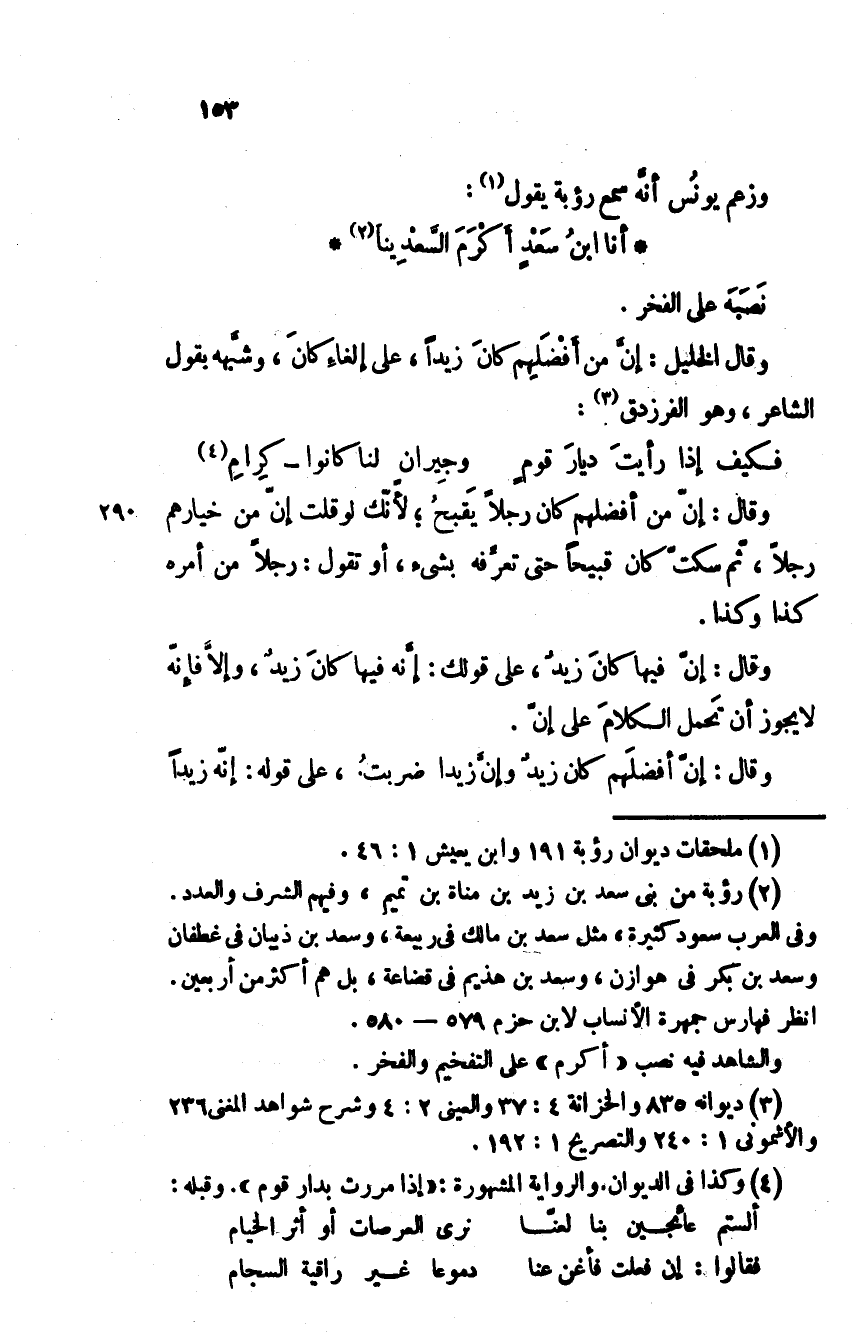 وزعم يونس أنه سمع رؤبة يقول: أنا ابنُ سعدٍ أكرمَ السَّعدْيِنا.