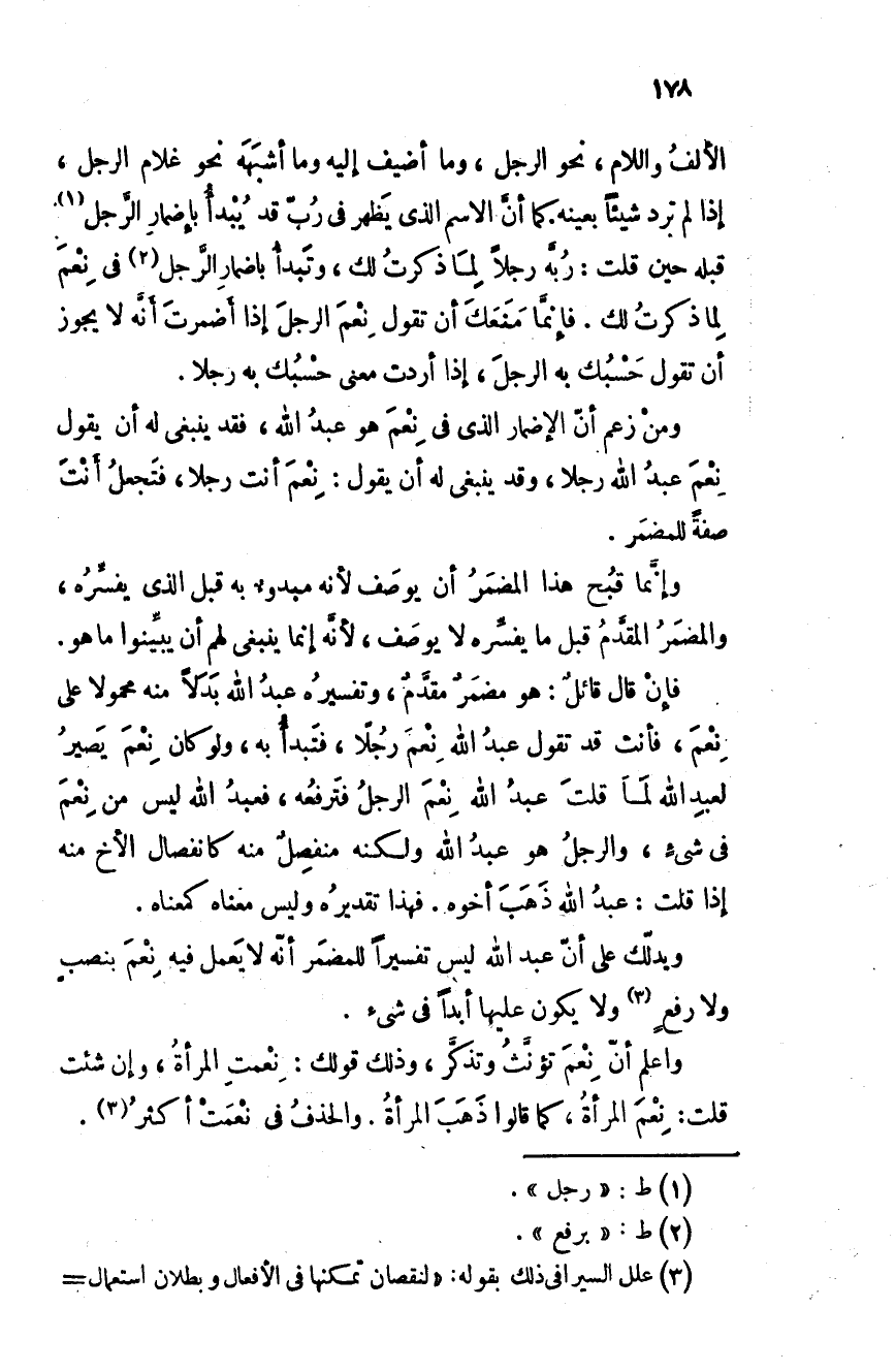 ومن زعم أن الإضمار الذي في نعمَ هو عبد الله، فقد ينبغي له أن يقول نعمَ عبد الله رجلا، وقد ينبغي له أن يقول: نعمَ أنت رجلا، فتجعل أنت صفة للمضمَر.