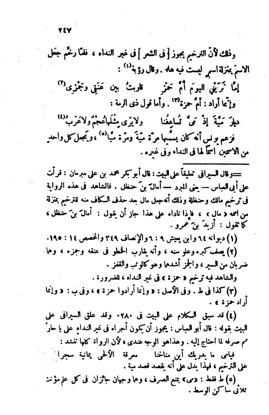 وذلك لأن الترخيم يجوز في الشعر في غير النداء، فلما رخم جعل الاسم بمنزلة اسمٍ ليست فيه هاء. وقال رؤبة:
