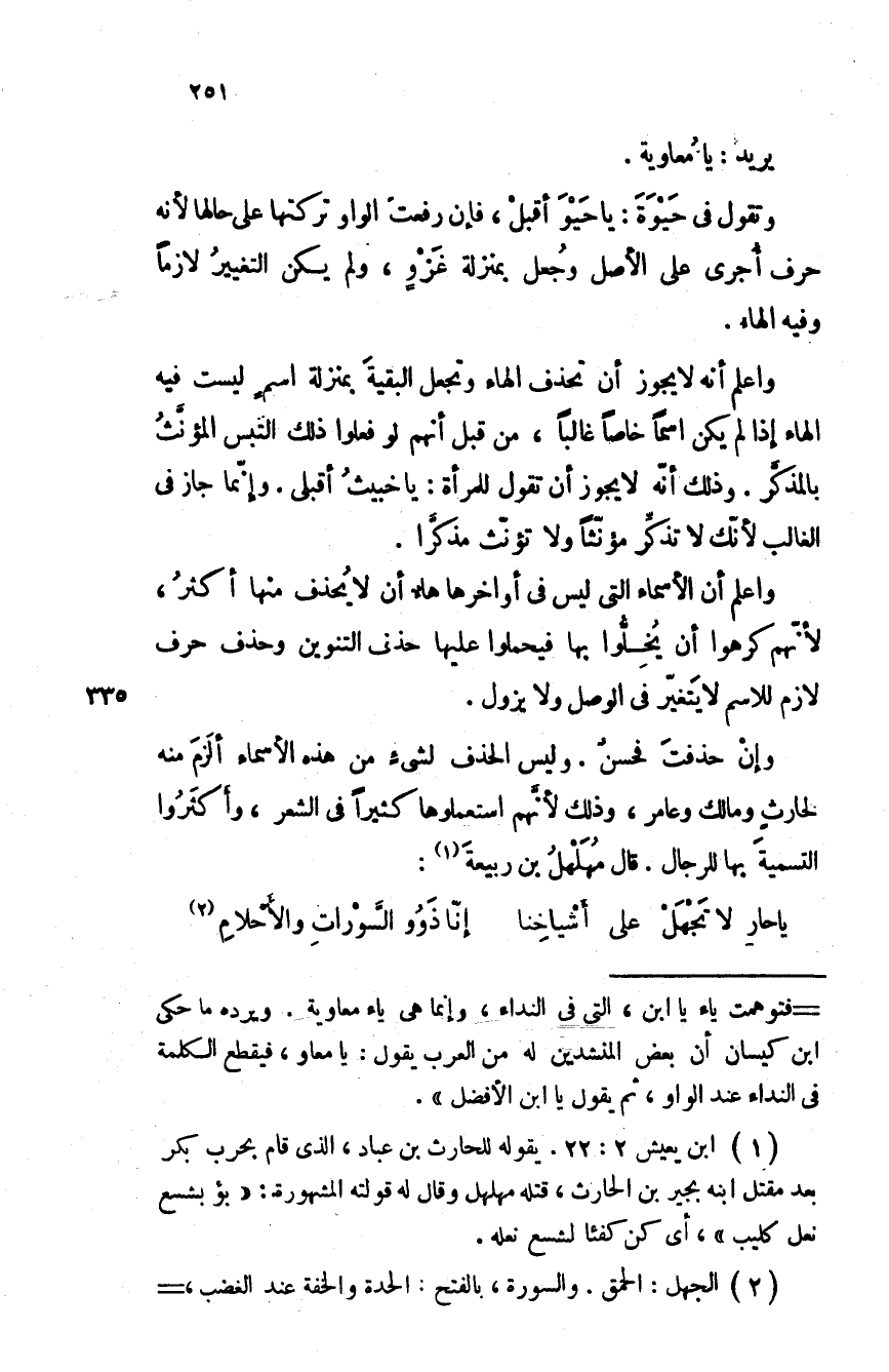 وإن حذفتَ فحسن. وليس الحذف لشيء من هذه الأسماء ألزم منه لحارث ومالك وعامر، وذلك لأنهم استعملوها كثيرا في الشعر، وأكثروا التسمية بها للرجال. قال مهلهل بن ربيعة: