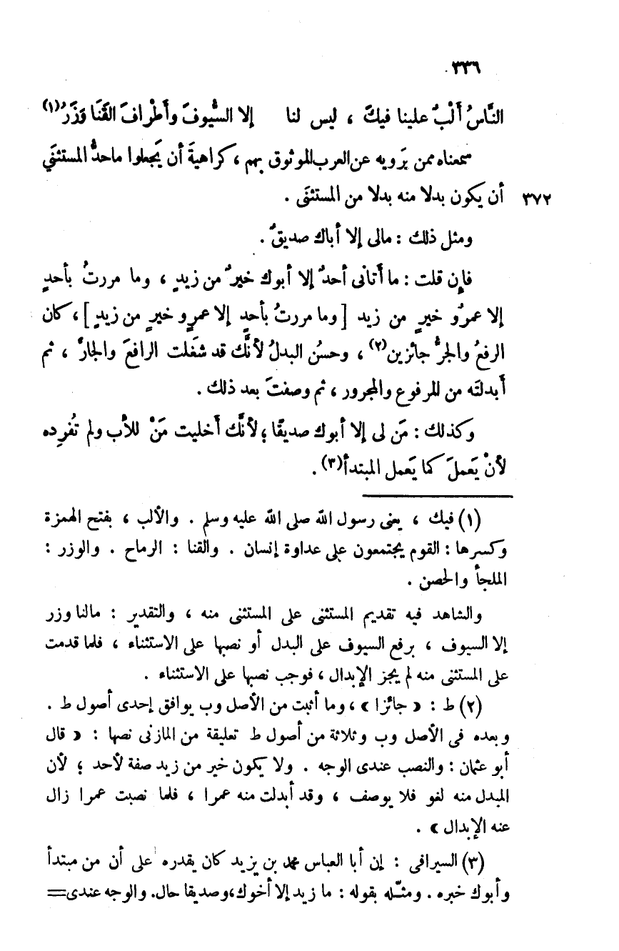 سمعناه ممن يرويه عن العرب الموثوق بهم، كراهية أن يجعلوا ما حدُّ المستثني أن يكون بدلا منه بدلاً من المستثنى.