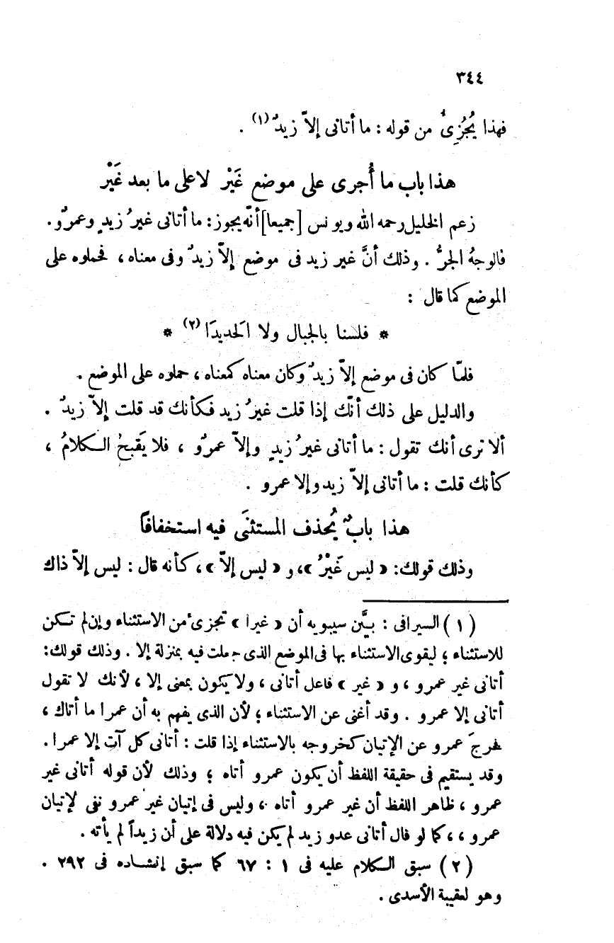والدليل على ذلك أنك إذا قلت غيرُ زيد فكأنك قد قلت إلا زيد. ألا ترى أنك تقول: ما أتاني غيرُ زيد وإلا عمرٌو، فلا يقبحُ الكلام، كأنك قلت: ما أتاني إلا زيد وإلا عمرو.