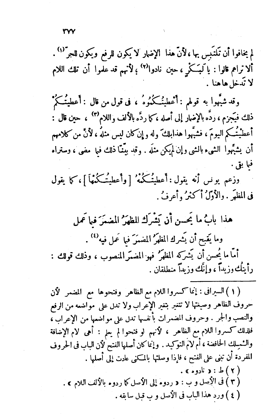 وقد شبهوا به قولهم: أعطيتُكموه، في قول من قال: أعطيتُكم ذلك فيجزم، رده بالإضمار إلى أصله، كما رده بالألف واللام، حين قال: أعطيتُكم اليوم، فشبهوا هذا بلكَ وله وإن كان ليس مثله، لأن من كلامهم أن يشبهوا الشيء بالشيء وإن لم يكن مثله. وقد بينا ذلك فيما مضى، وستراه فيما بقى.