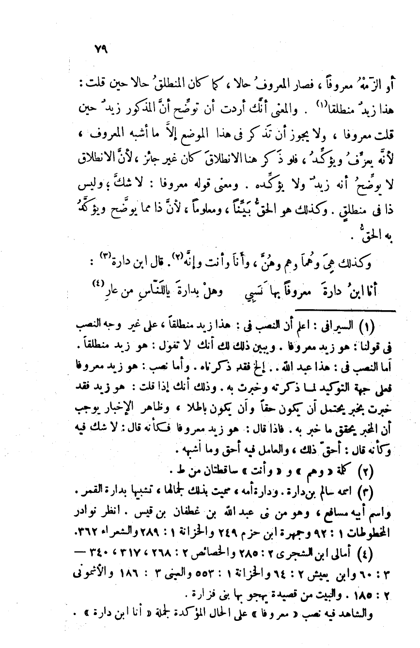أو الزَمْه معروفا، فصار المعروف حالا، كما كان المنطلق حالا حين قلت: هذا زيد منطلقا. والمعنى أنك أردت أن توضح أن المذكور زيد حين قلت معروفا، ولا يجوز أن تذكر في هذا الموضع إلا ما أشبه المعروف، لأنه يعرف ويؤكد، فلو ذكر هنا الانطلاق كان غير جائز، لأن الانطلاق لا يوضح أنه زيد ولا يؤكده. ومعنى قوله معروفا: لا شك؛ وليس ذا فى منطلق. وكذلك هو الحق بينا، ومعلوما، لأن ذا مما يوضَّح ويؤكَّد به الحق.