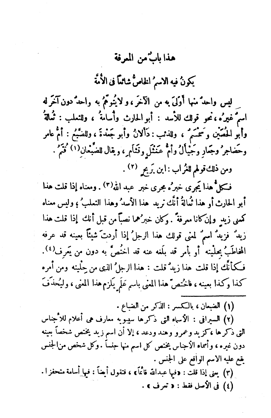 ليس واحدٌ منها أولى به من الآخر، ولا يُتوهّم به واحدٌ دون آخر له اسمٌ غيره، نحو قولك للأسد: أبو الحارث وأسامة، وللثعلب: ثُعالة وأبو الحُصَين وسَمسَم، وللذئب: دأَلان وأبو جَعدة، وللضّبُع: أم عامر وحَضاجر وجَعار وجيْأل وأم عنثل وقَثام، ويقال للضِّبعان قُثَم.