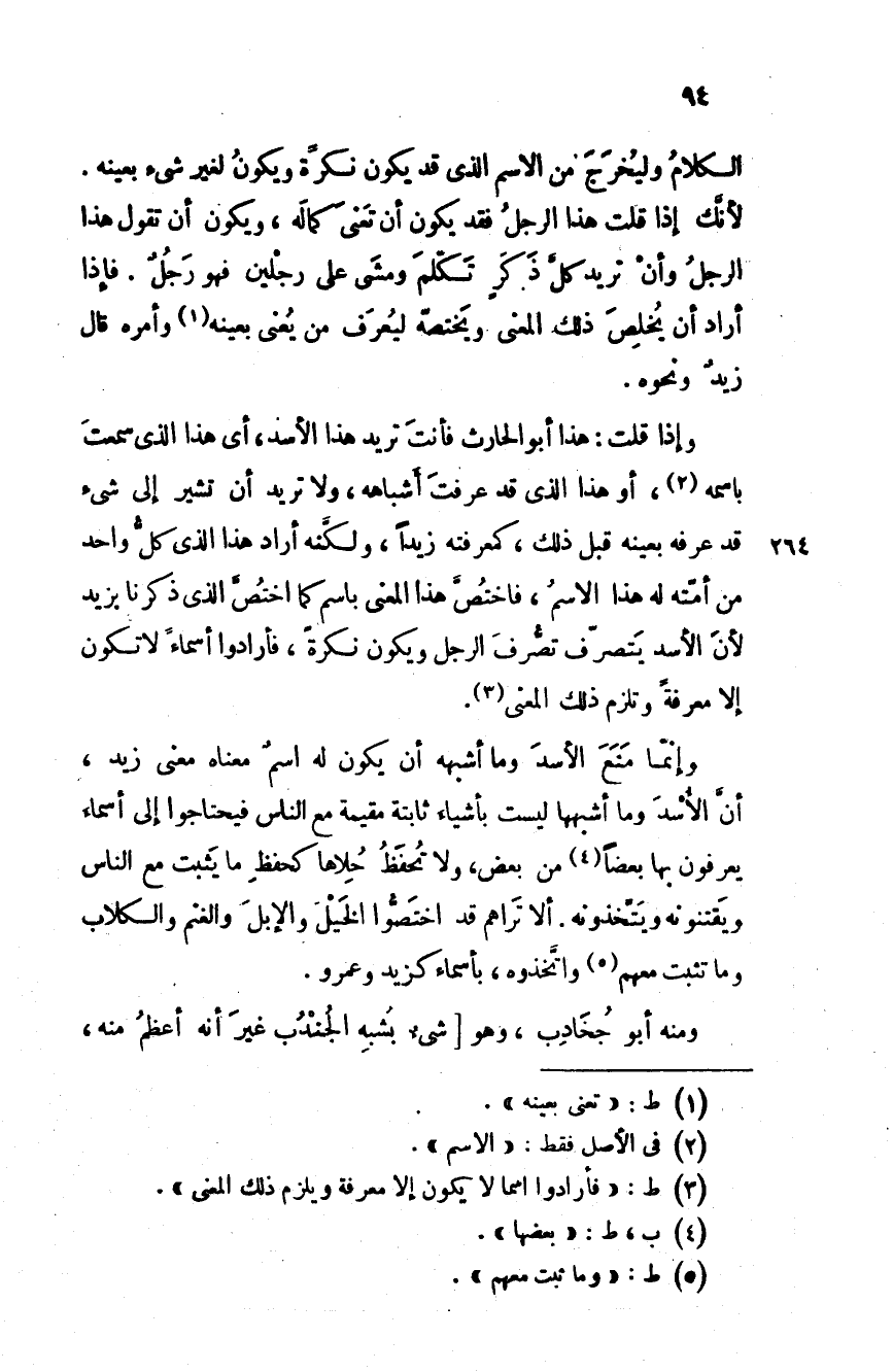 وإنما منع الأسد وما أشبهه أن يكون له اسمٌ معناه معنى زيد، أن الأسد وما أشبهها ليست بأشياء ثابتة مقيمة مع الناس فيحتاجوا إلى أسماء يعرفون بها بعضا من بعض، ولا تحفَظ حُلاها كحفظ ما يَثبت مع الناس ويقتنونه ويتخذونه. ألا تراهم قد اختصوا الخيل والإبل والغنم والكلاب وما تثبت معهم واتخذوه، بأسماء كزيد وعمرو.