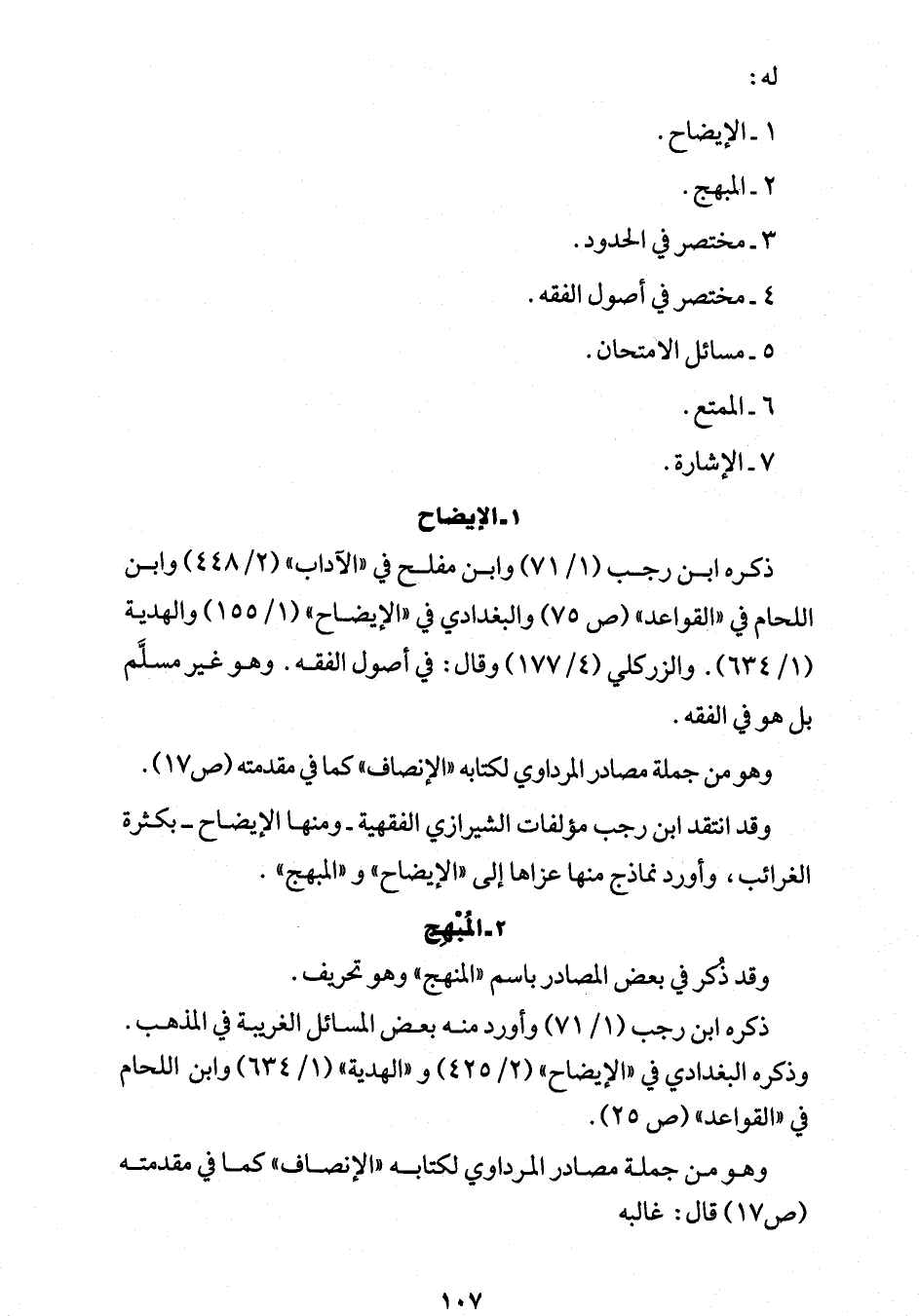 ذكره ابن رجب (1/ 71) وابن مفلح في "الآداب" (2/ 448) وابن اللحام في "القواعد" (ص 75) والبغدادي في "الإيضاح" (1/ 155) والهدية (1/ 634). والزركلي (4/ 177) وقال: في أصول الفقه. وهو غير مسلَّم بل هو في الفقه.