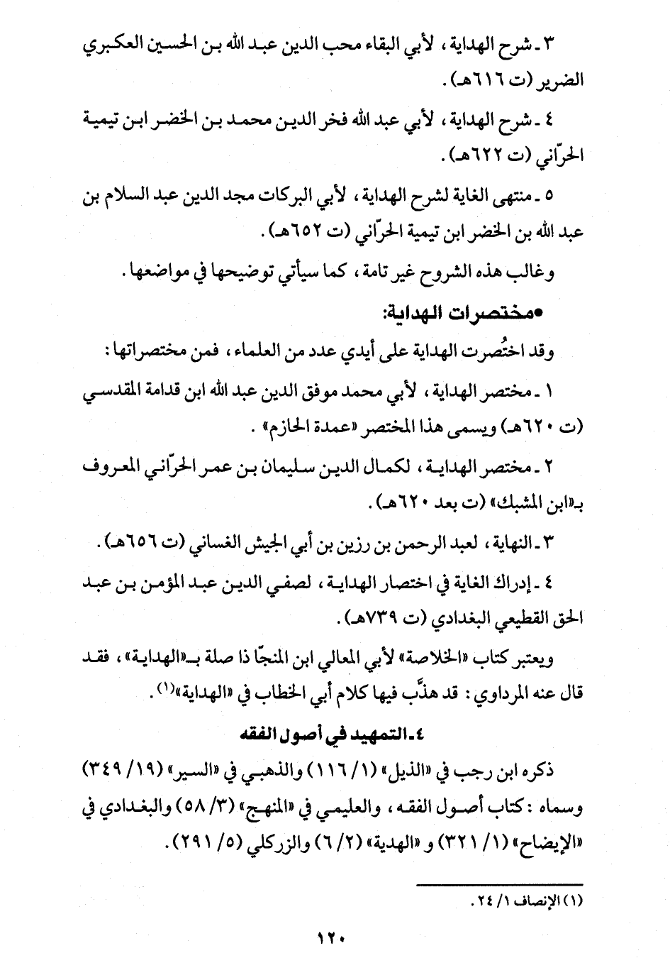 1 - مختصر الهداية، لأبي محمد موفق الدين عبد الله ابن قدامة المقدسي (ت 620 هـ) ويسمى هذا المختصر"عمدة الحازم".
