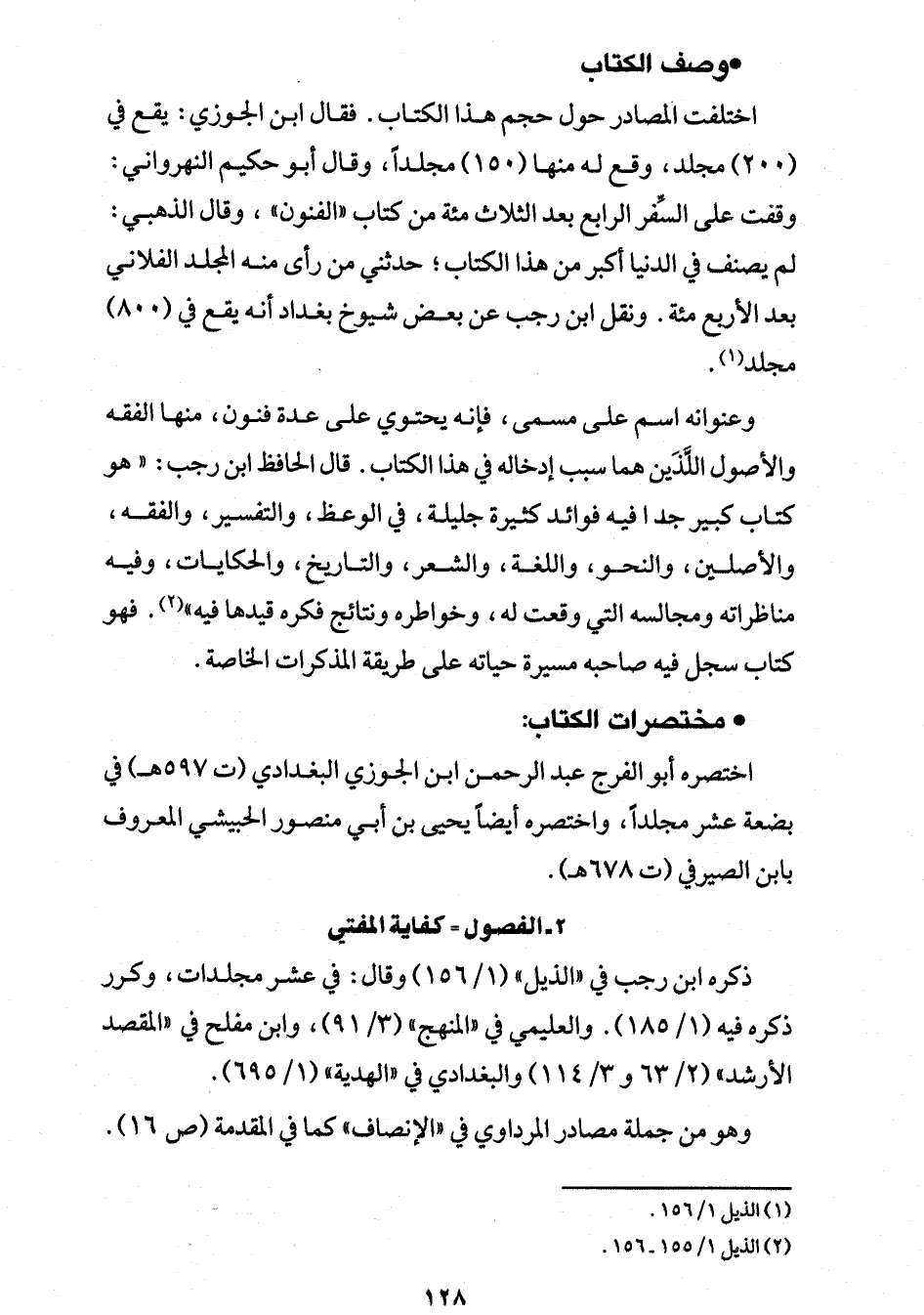 وعنوانه اسم على مسمى، فإنه يحتوي على عدة فنون، منها الفقه والأصول اللَّذَين هما سبب إدخاله في هذا الكتاب. قال الحافظ ابن رجب: "هو كتاب كبير جدا فيه فوائد كثيرة جليلة، في الوعظ، والتفسير، والفقه، والأصلين، والنحو، واللغة، والشعر، والتاريخ، والحكايات، وفيه مناظراته ومجالسه التي وقعت له، وخواطره ونتائج فكره قيدها فيه" (¬2). فهو كتاب سجل فيه صاحبه مسيرة حياته على طريقة المذكرات الخاصة.
