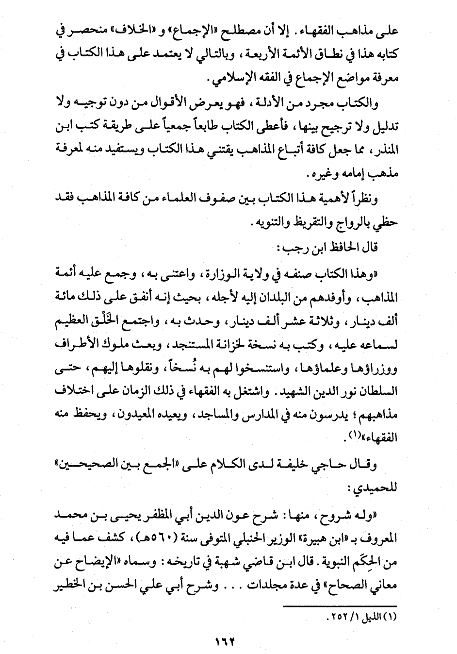 على مذاهب الفقهاء. إلا أن مصطلح "الإجماع" و"الخلاف" منحصر في كتابه هذا في نطاق الأئمة الأربعة، وبالتالي لا يعتمد على هذا الكتاب في معرفة مواضع الإجماع في الفقه الإسلامي.