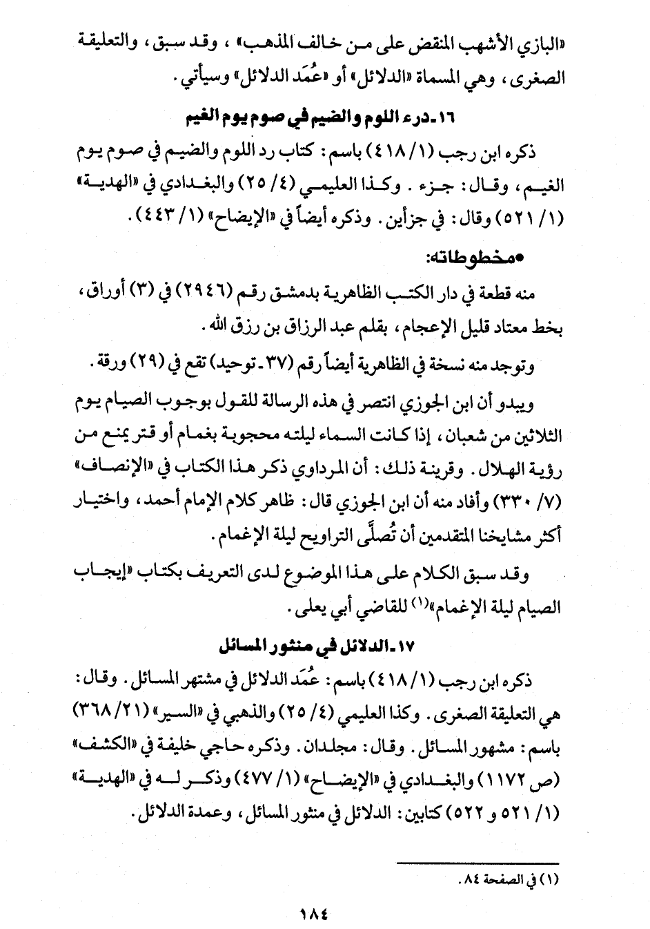 ذكره ابن رجب (1/ 418) باسم: كتاب رد اللوم والضيم في صوم يوم الغيم، وقال: جزء. وكذا العليمي (4/ 25) والبغدادي في "الهدية" (1/ 521) وقال: في جزأين. وذكره أيضًا في "الإيضاح" (1/ 443).