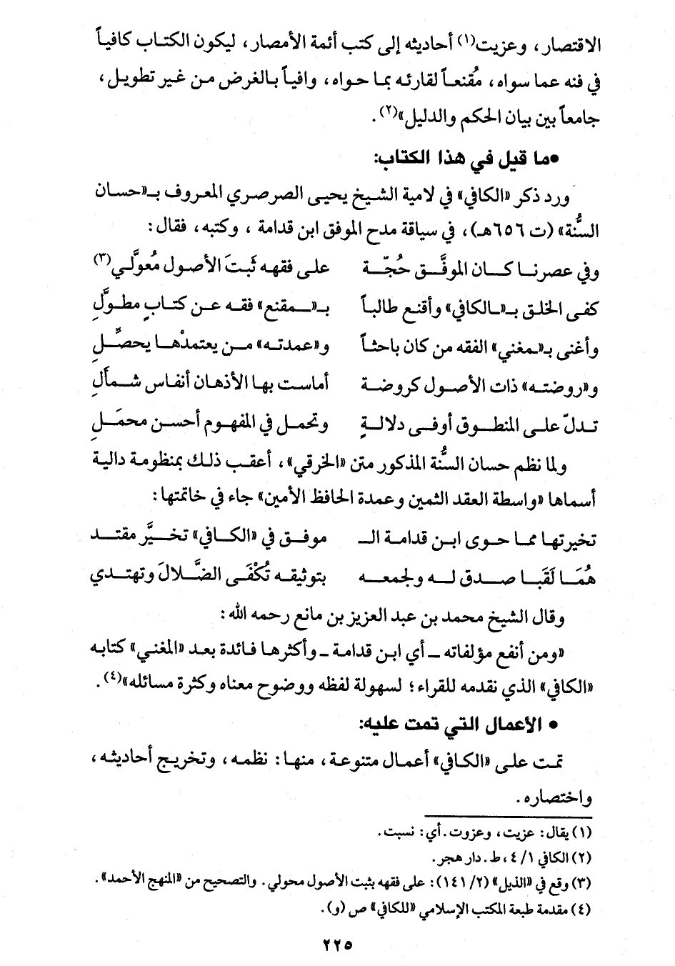 كفى الخلق بـ"ـالكافي" وأقنع طالبًا ... بـ"ــمقنع" فقه عن كتابٍ مطوَّلِ