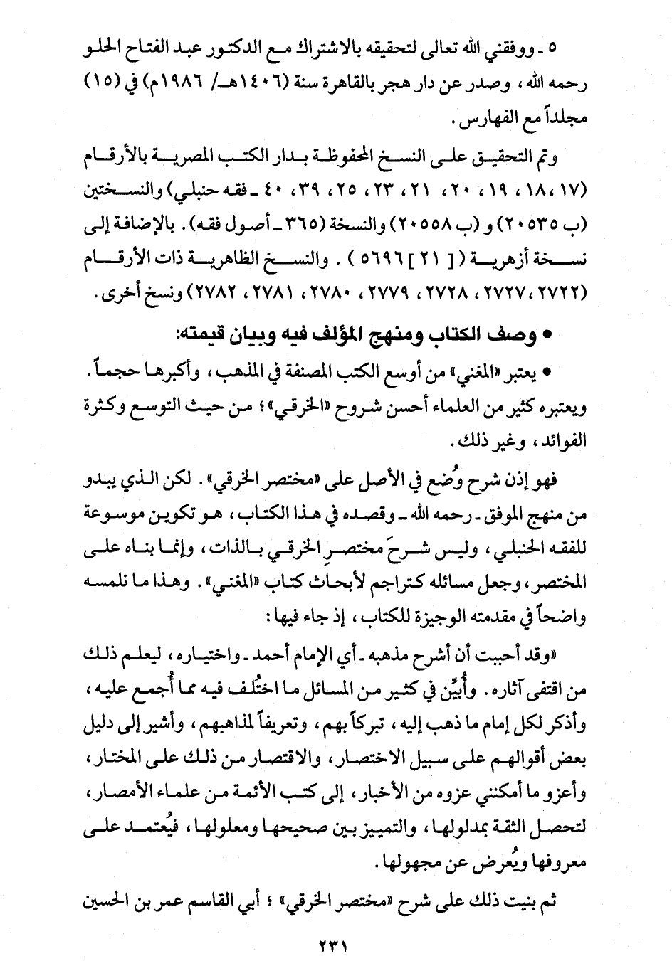 • يعتبر "المغني" من أوسع الكتب المصنفة في المذهب، وأكبرها حجمًا. ويعتبره كثير من العلماء أحسن شروح "الخرقي"؛ من حيث التوسع وكثرة الفوائد، وغير ذلك.