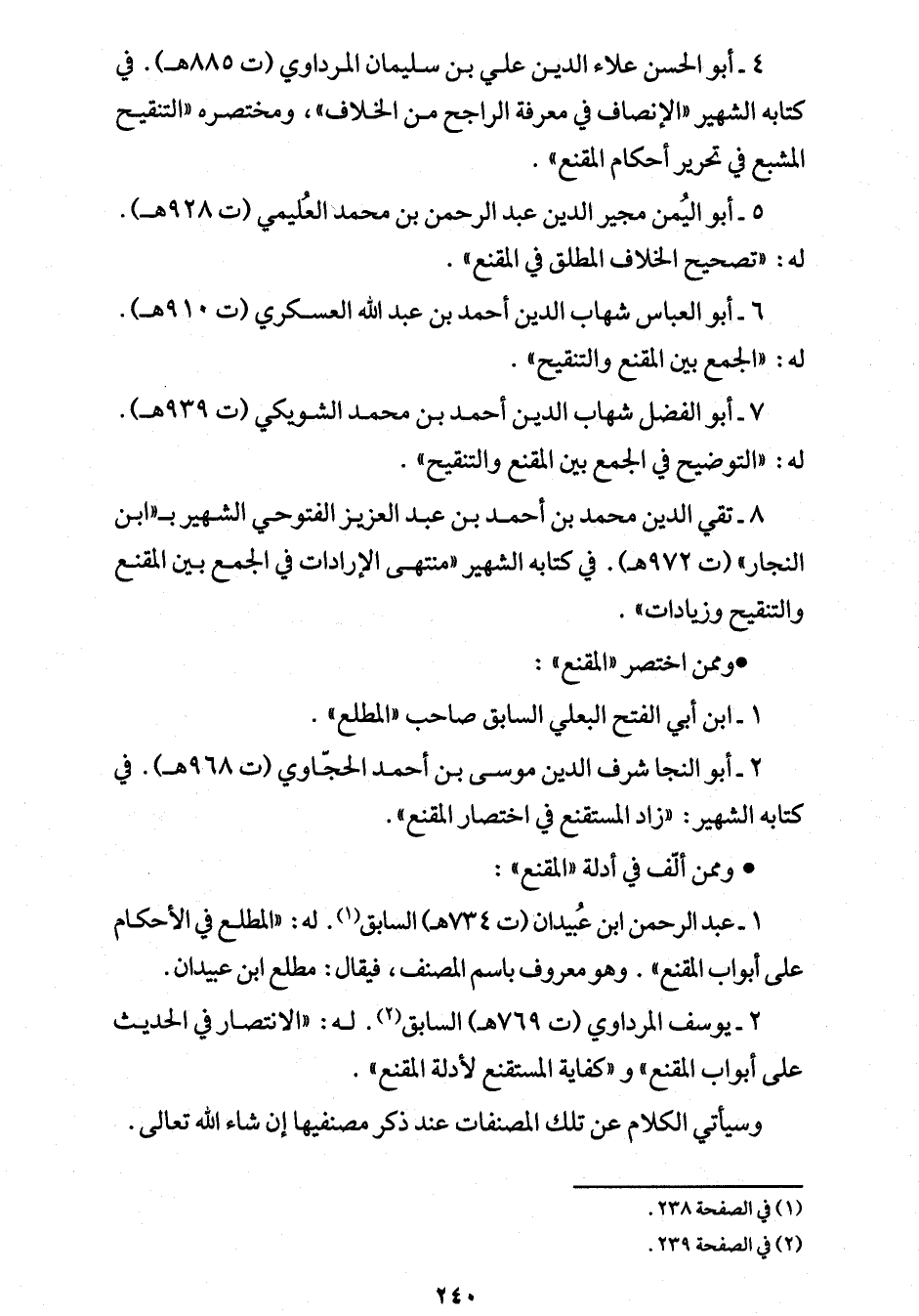 8 - تقي الدين محمد بن أحمد بن عبد العزيز الفتوحي الشهير بـ"ابن النجار" (ت 972 هـ). في كتابه الشهير"منتهى الإرادات في الجمع بين المقنع والتنقيح وزيادات".