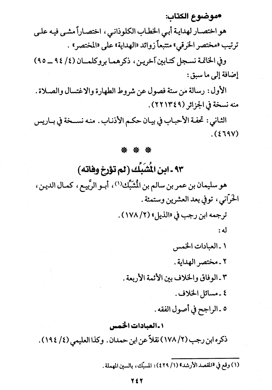 (¬1) وقع في "المقصد الأرشد" (1/ 429): المسبّك، بالسين المهملة.