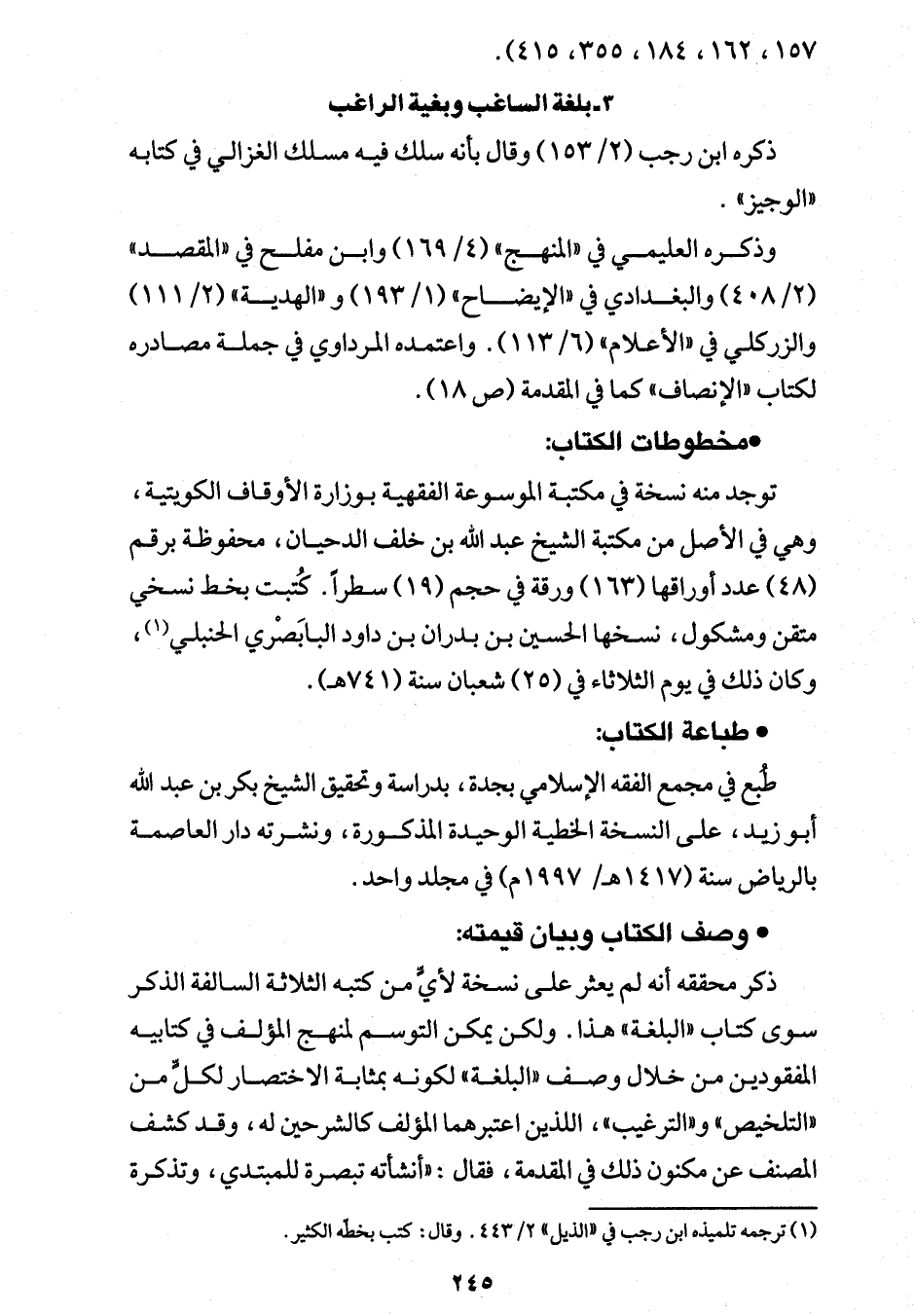 وذكره العليمي في "المنهج" (4/ 169) وابن مفلح في "المقصد" (2/ 408) والبغدادي في (الإيضاح) (1/ 193) و"الهدية " (2/ 111) والزركلي في "الأعلام" (6/ 113). واعتمده المرداوي في جملة مصادره لكتاب "الإنصاف"كما في المقدمة (ص 18).