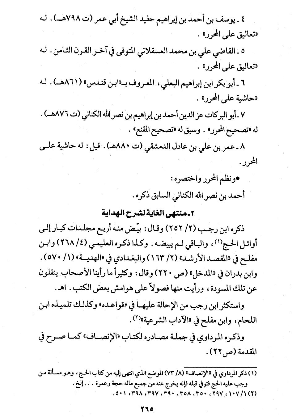 6 - أبو بكر ابن إبراهيم البعلي، المعروف بـ "ابن قندس" (861 هـ). له "حاشية على المحرر".