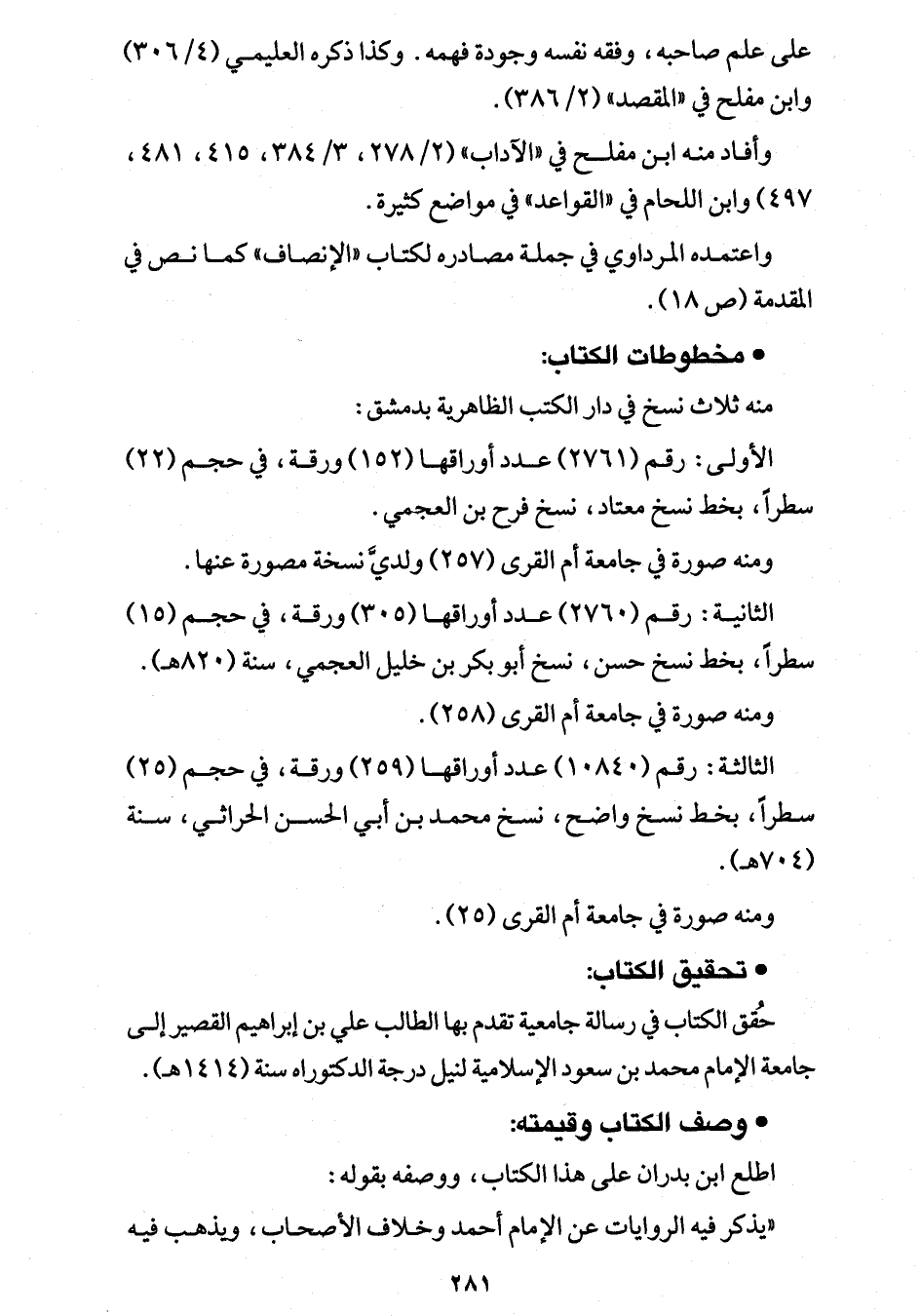 واعتمده المرداوي في جملة مصادره لكتاب "الإنصاف" كما نص في المقدمة (ص 18).