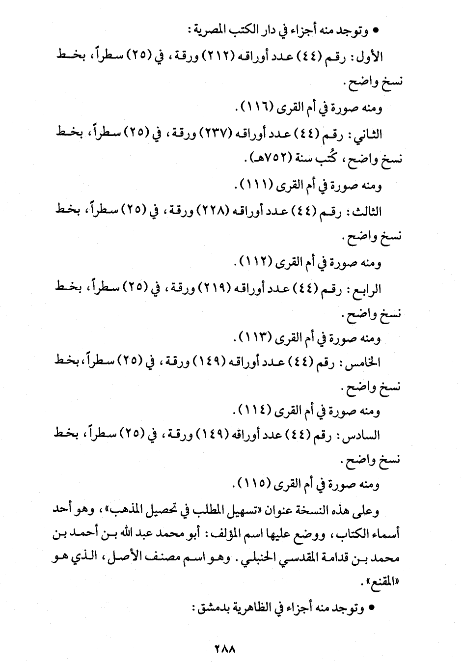 السادس: رقم (44) عدد أوراقه (149) ورقة، في (25) سطراً، بخط نسخ واضح.