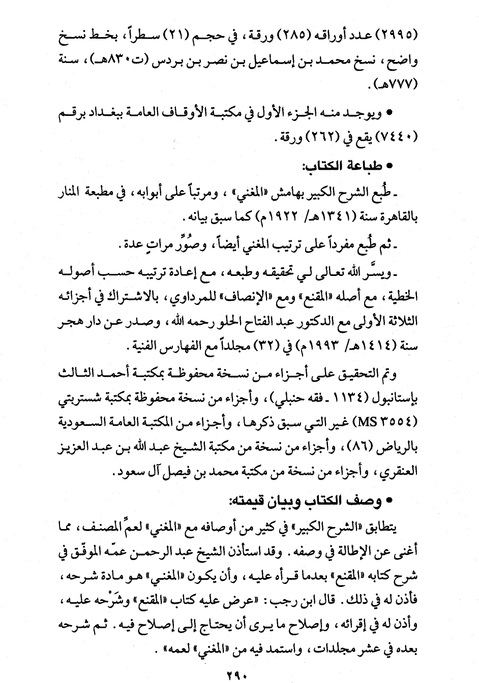 - ويسِّر الله تعالى في تحقيقه وطبعه، مع إعادة ترتيبه حسب أصوله الخطية، مع أصله "المقنع" ومع "الإنصاف" للمرداوي، بالإشتراك في أجزائه الثلاثة الأولى مع الدكتور عبد الفتاح الحلو -رَحِمَهُ اللهُ-، وصدر عن دار هجر سنة (1414 هـ/ 1993 م) في (32) مجلداً مع الفهارس الفنية.