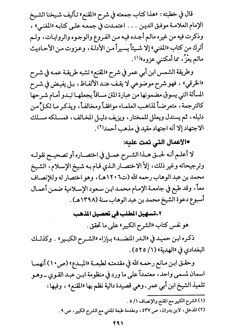 (¬2) المدخل، لإبن بدران، ص 437، ومقدمة طبعة المغني مع الشرح الكبير، ص 9.