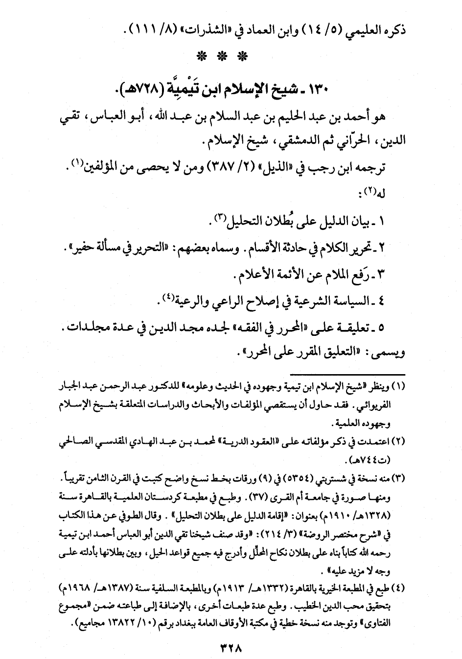 130 - شيخ الإسلام ابن تَيْمِيَّة (728 هـ).