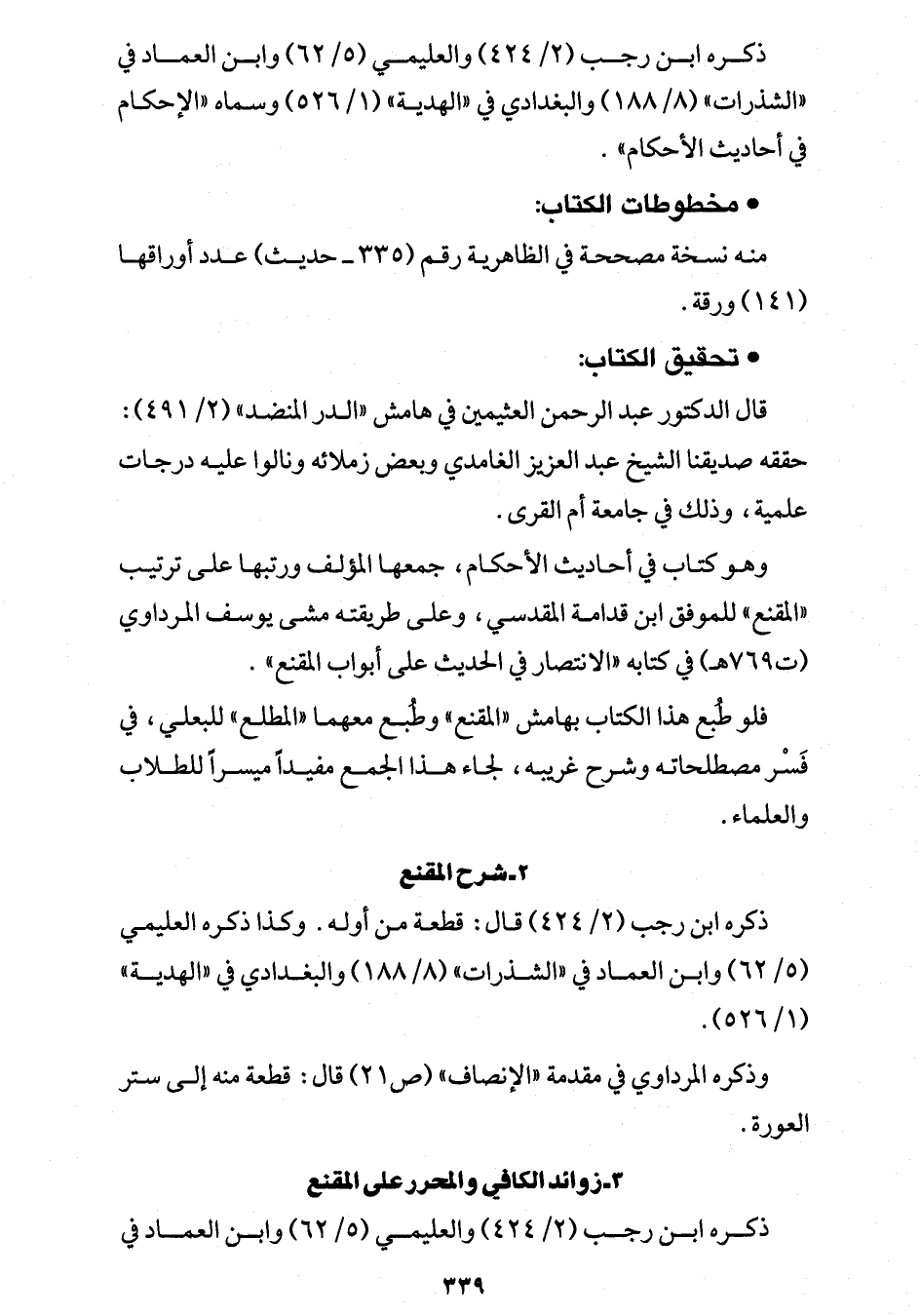 فلو طُبع هذا الكتاب بهامش "المقنع" وطُبع معهما "المطلع" للبعلي، في فَسْر مصطلحاته وشرح غريبه، لجاء هذا الجمع مفيداً ميسراً للطلاب والعلماء.