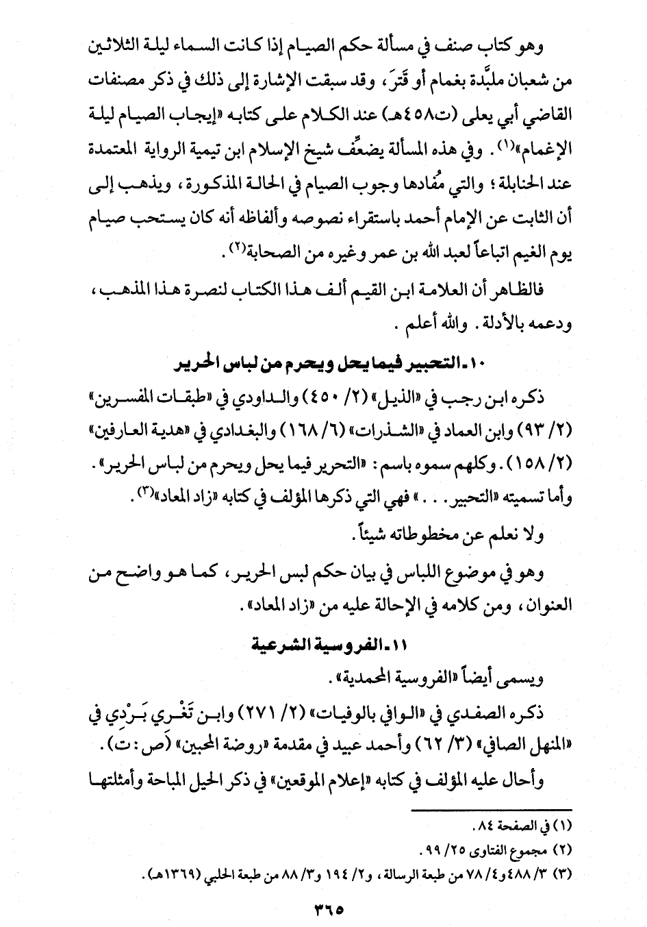 ذكره ابن رجب في "الذيل" (2/ 450) والداودي في "طبقات المفسرين" (2/ 93) وابن العماد في "الشذرات" (6/ 168) والبغدادي في "هدية العارفين" (2/ 158). وكلهم سموه باسم: "التحرير فيما يحل ويحرم من لباس الحرير". وأما تسميته "التحبير ... " فهي التي ذكرها المؤلف في كتابه "زاد المعاد" (¬3).