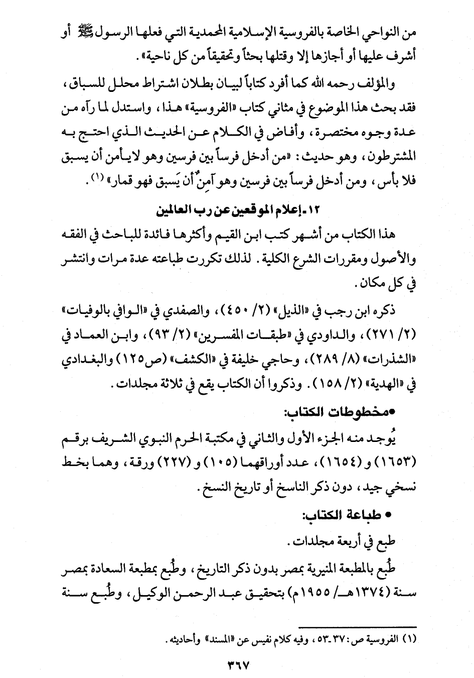 (¬1) الفروسية ص: 37 - 53، وفيه كلام نفيس عن "المسند" وأحاديثه.