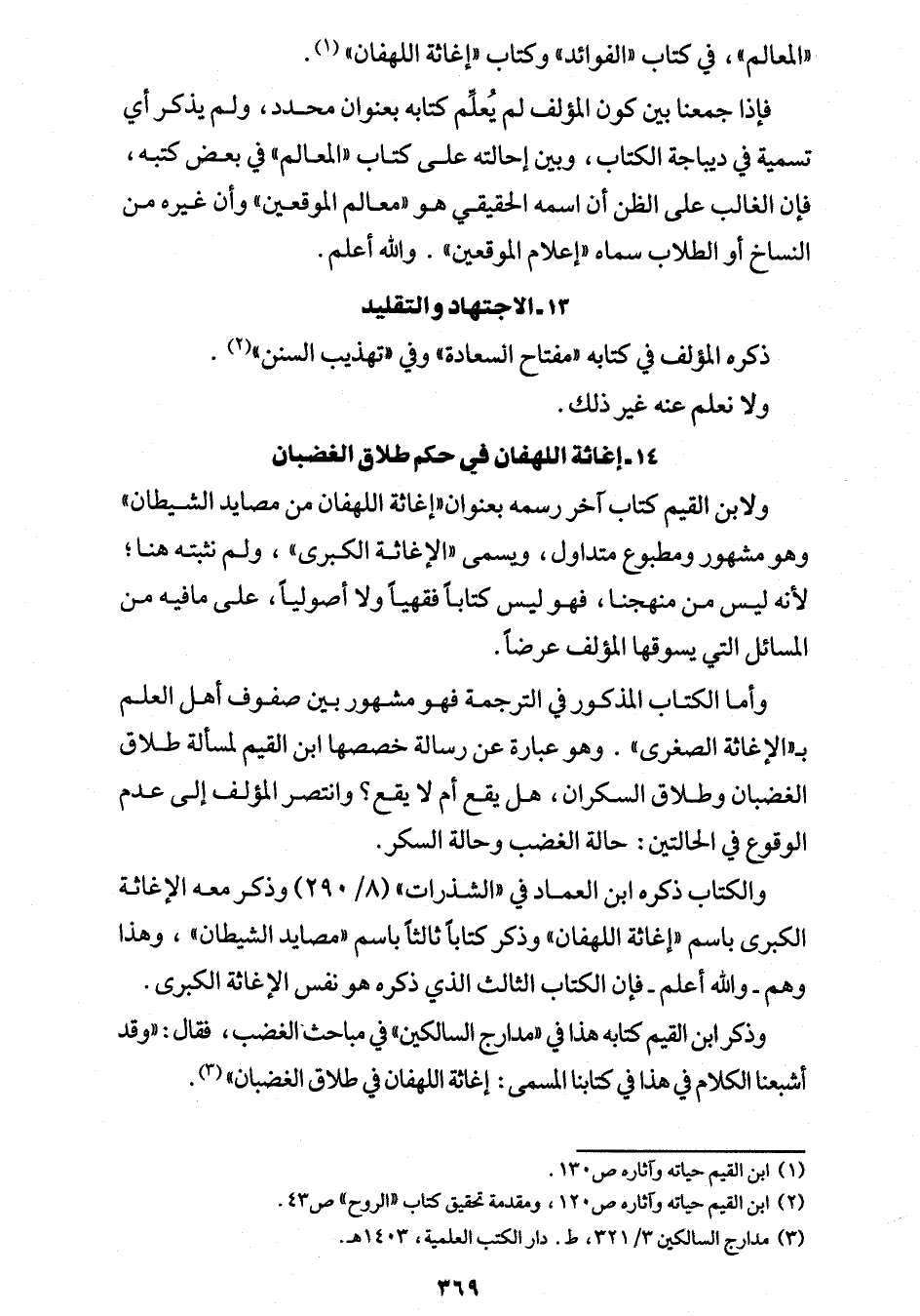 "المعالم"، في كتاب "الفوائد" وكتاب "إغاثة اللهفان" (¬1).