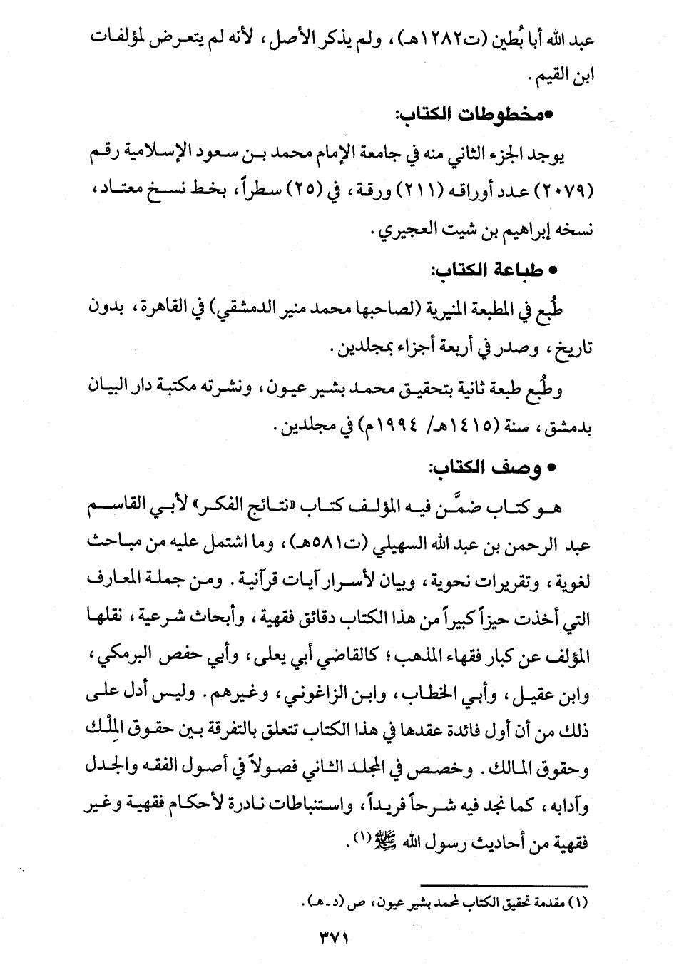 عبد الله أبا بُطين (ت 1282 هـ)، ولم يذكر الأصل، لأنه لم يتعرض لمؤلفات ابن القيم.