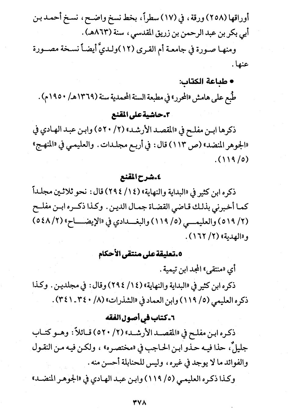 طُبع على هامش "المحرر" في مطبعة السنة المحمدية سنة (1369 هـ/ 1950 م).