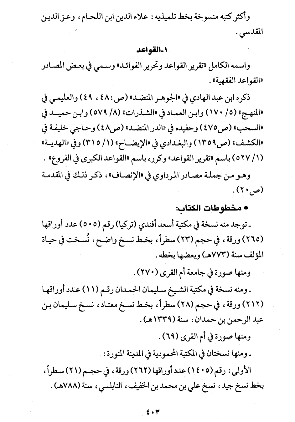 ذكره ابن عبد الهادي في "الجوهر المنضد" (ص: 48، 49) والعليمي في "المنهج" (5/ 170) وابن العماد في "الشذرات" (8/ 579) وابن حميد في "السحب" (ص 475) وحفيده في "الدر المنضد" (ص 48) وحاجي خليفة في "الكشف" (ص 1359) والبغدادي في "الإيضاح" (1/ 315) وفي "الهدية" (1/ 527) باسم "تقرير القواعد" وكرره باسم "القواعد الكبرى في الفروع".