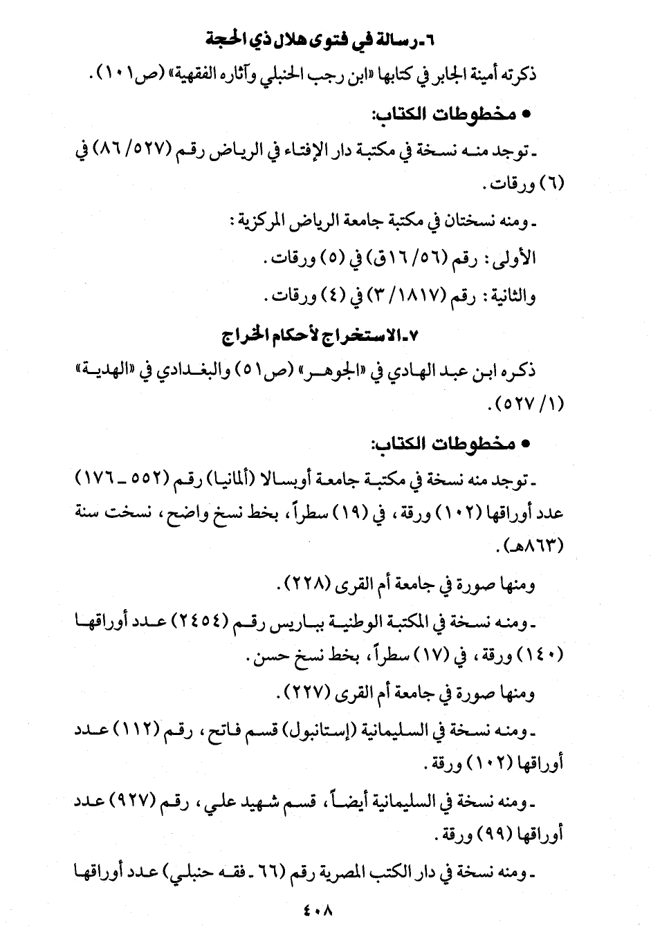 - ومنه نسخة في دار الكتب المصرية رقم (66 - فقه حنبلي) عدد أوراقها