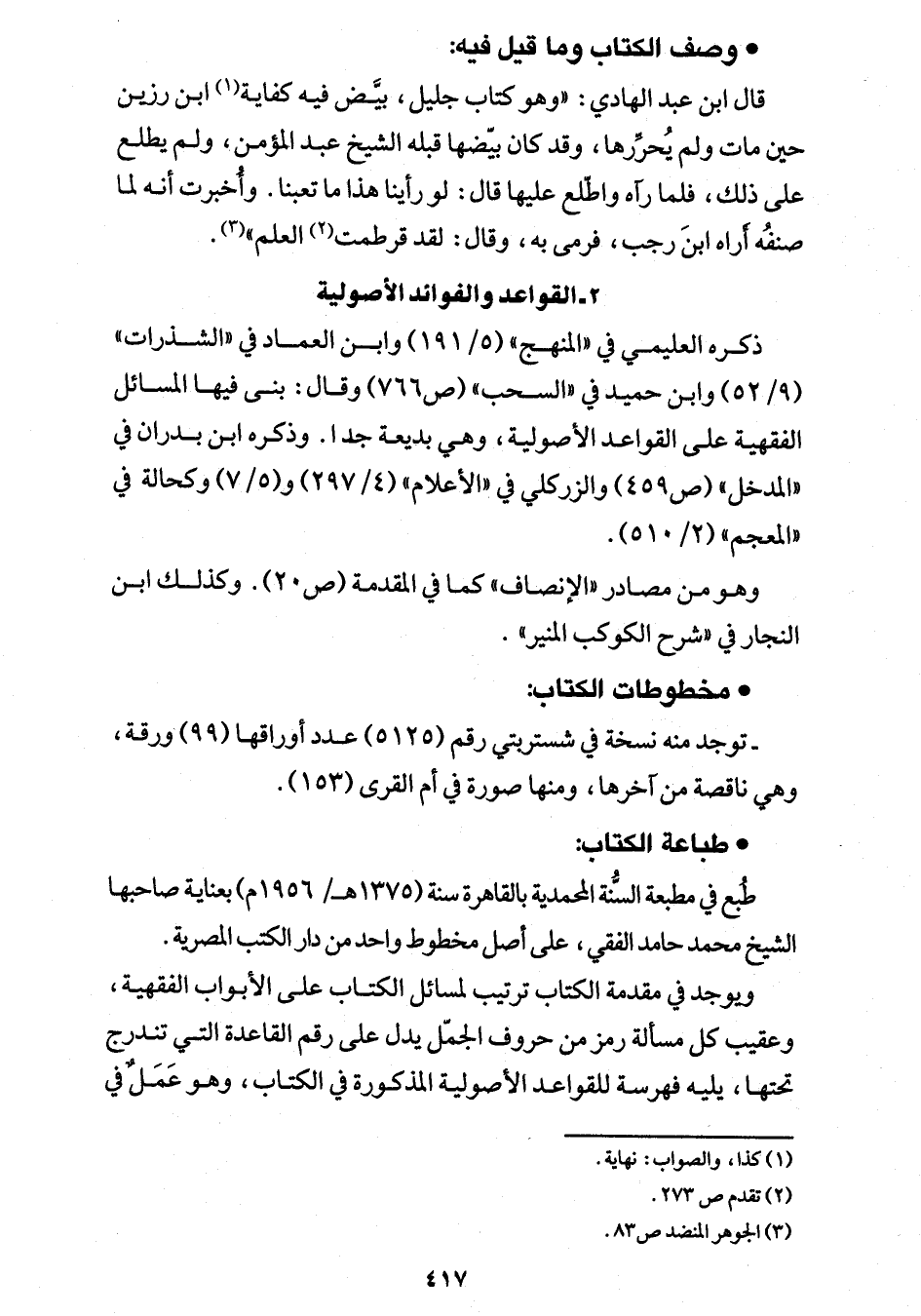 ذكره العليمي في "المنهج" (5/ 191) وابن العماد في "الشذرات" (9/ 52) وابن حميد في "السحب" (ص 766) وقال: بنى فيها المسائل الفقهية على القواعد الأصولية، وهي بديعة جدا. وذكره ابن بدران في "المدخل" (ص 459) والزركلي في "الأعلام" (4/ 297) و (5/ 7) وكحالة في "المعجم" (2/ 510).