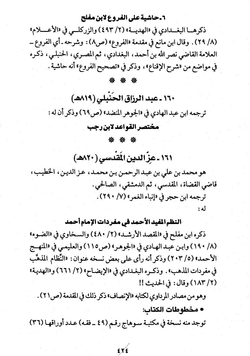 ذكره ابن مفلح في "المقصد الأرشد" (2/ 480) والسخاوي في "الضوء" (8/ 190) وابن عبد الهادي في "الجوهر" (ص 115) والعليمي في "المنهج الأحمد" (5/ 203) وذكر أنه رأى على بعض نسخه عنوان: "النِّظام المذهَّب في مفردات المذهب". وذكره البغدادي في "الإيضاح" (2/ 661) و"الهدية" (2/ 183) وقال: في الحديث!!