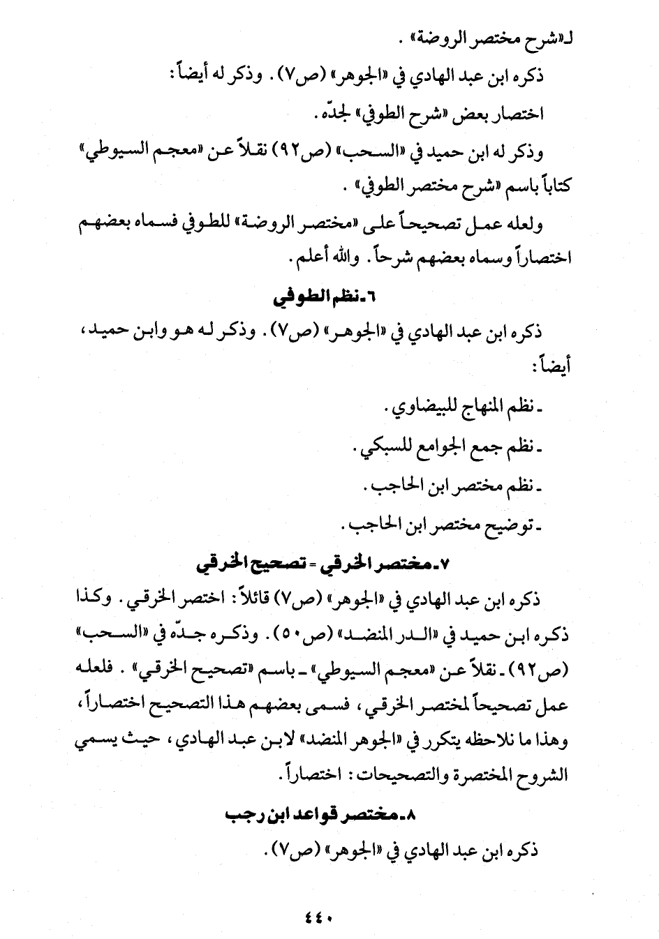 وذكر له ابن حميد في "السحب" (ص 92) نقلًا عن "معجم السيوطي" كتابًا باسم "شرح مختصر الطوفي ".