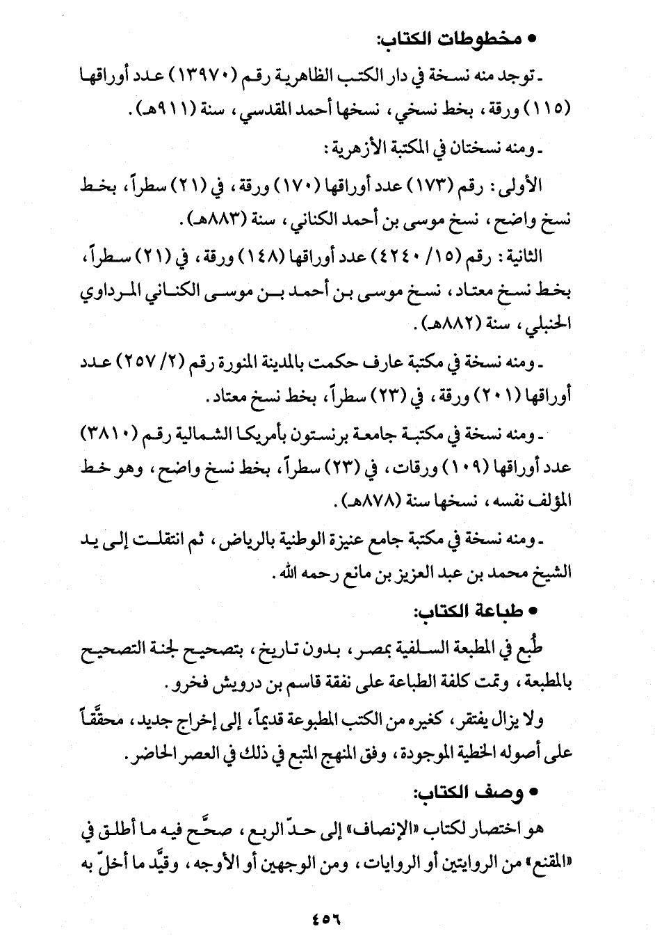 هو اختصار لكتاب "الإنصاف" إلى حدّ الربع، صحَّح فيه ما اطلق في "المقنع" من الروايتين أو الروايات، ومن الوجهين أو الأوجه، وقيَّد ما أخلّ به