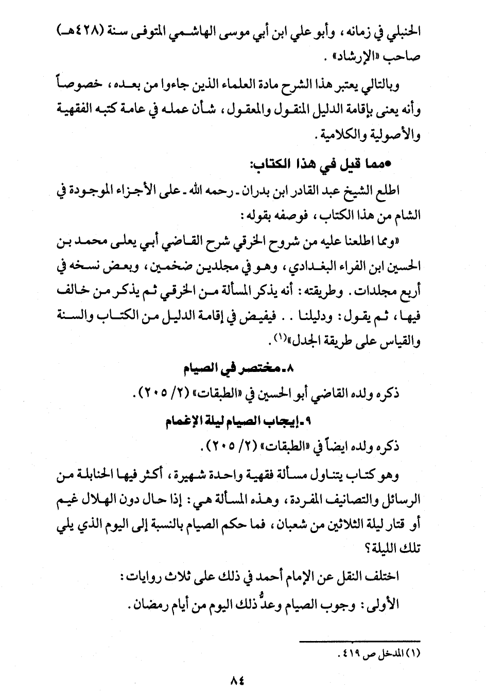 الحنبلي في زمانه، وأبو علي ابن أبي موسى الهاشمي المتوفى سنة (428 هـ) صاحب "الإرشاد".