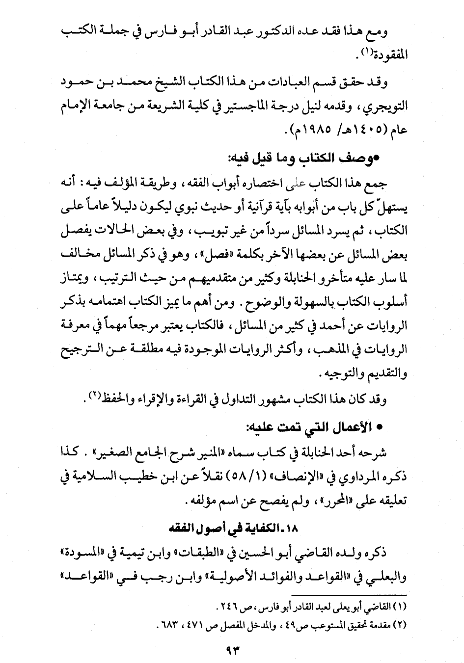 (¬1) القاضي أبو يعلى لعبد القادر أبو فارس، ص 246.