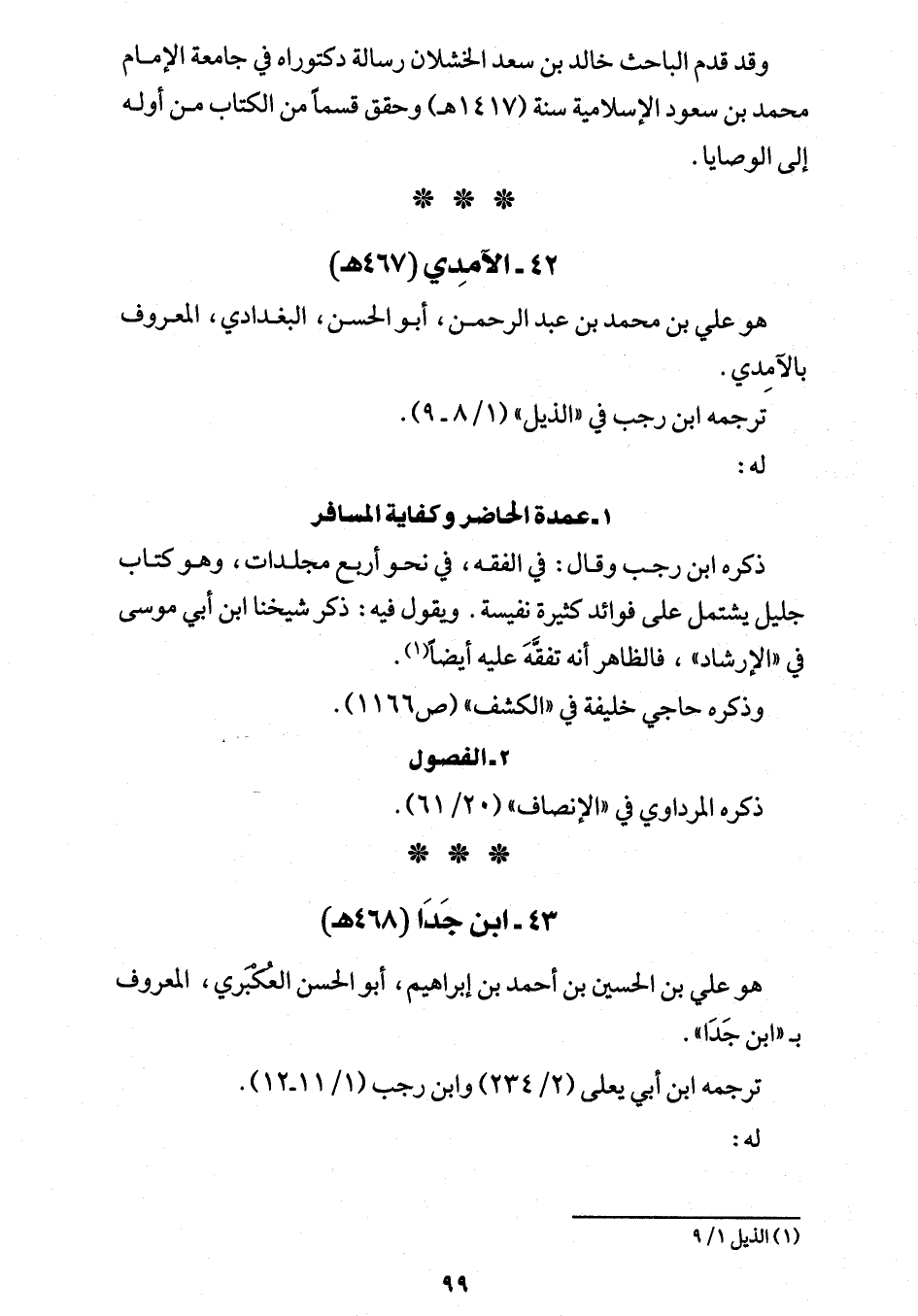 ذكره ابن رجب وقال: في الفقه، في نحو أربع مجلدات، وهو كتاب جليل يشتمل على فوائد كثيرة نفيسة. ويقول فيه: ذكر شيخنا ابن أبي موسى في "الإرشاد"، فالظاهر أنه تفقَّهَ عليه أيضًا (¬1).