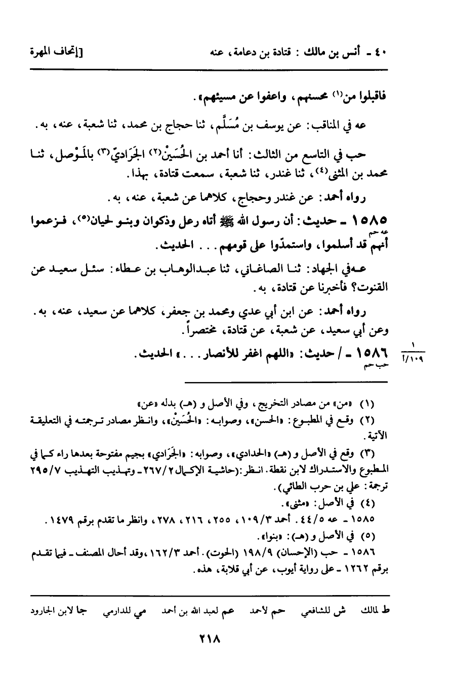 1586 - حَدِيثٌ (حب حم) : " اللَّهُمَّ اغْفِرْ لِلأَنْصَارِ ... " الْحَدِيثَ.