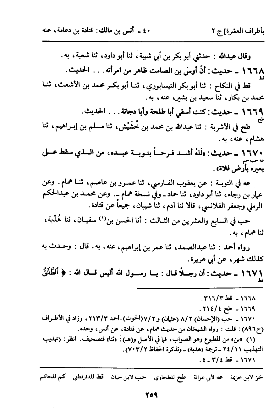 1669 - حَدِيثٌ (طح) : كُنْتُ أَسْقِي أَبَا طَلْحَةَ وَأَبَا دُجَانَةَ ... الْحَدِيثَ.