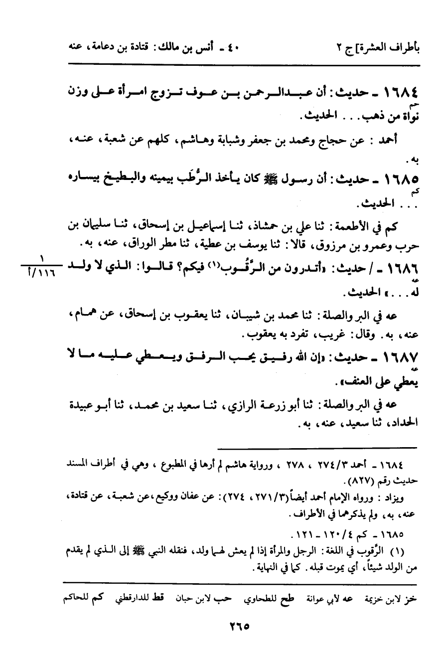 1685 - حَدِيثٌ (كم) : أَنَّ رَسُولَ اللَّهِ، صلى الله عليه وسلم، كَانَ يَأْخُذُ الرُّطَبَ بِيَمِينِهِ وَالْبِطِّيخَ بِيَسَارِهِ ... الْحَدِيثَ.