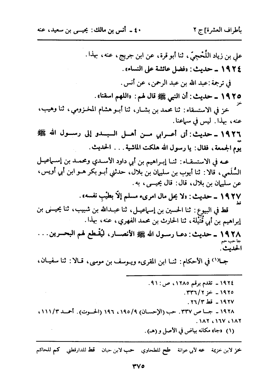 حب فِي التَّاسِعِ مِنَ الثَّالِثِ: أنا عَبْدُ الْكَبِيرِ بْنُ عُمَرَ الْخَطَّابِيُّ، ثنا مُحَمَّدُ بْنُ بَشَّارٍ، ثنا يَحْيَى بْنُ سَعِيدٍ الْقَطَّانُ، عَنْهُ، بِهِ. وَعَنِ الْحَسَنِ بْنِ سُفْيَانَ، ثنا مُحَمَّدُ بْنُ عُبَيْدِ بْنِ حَسَّابٍ، ثنا حَمَّادُ بْنُ زَيْدٍ، عَنْ يَحْيَى بْنِ سَعِيدٍ الأَنْصَارِيِّ، نَحْوَهُ.