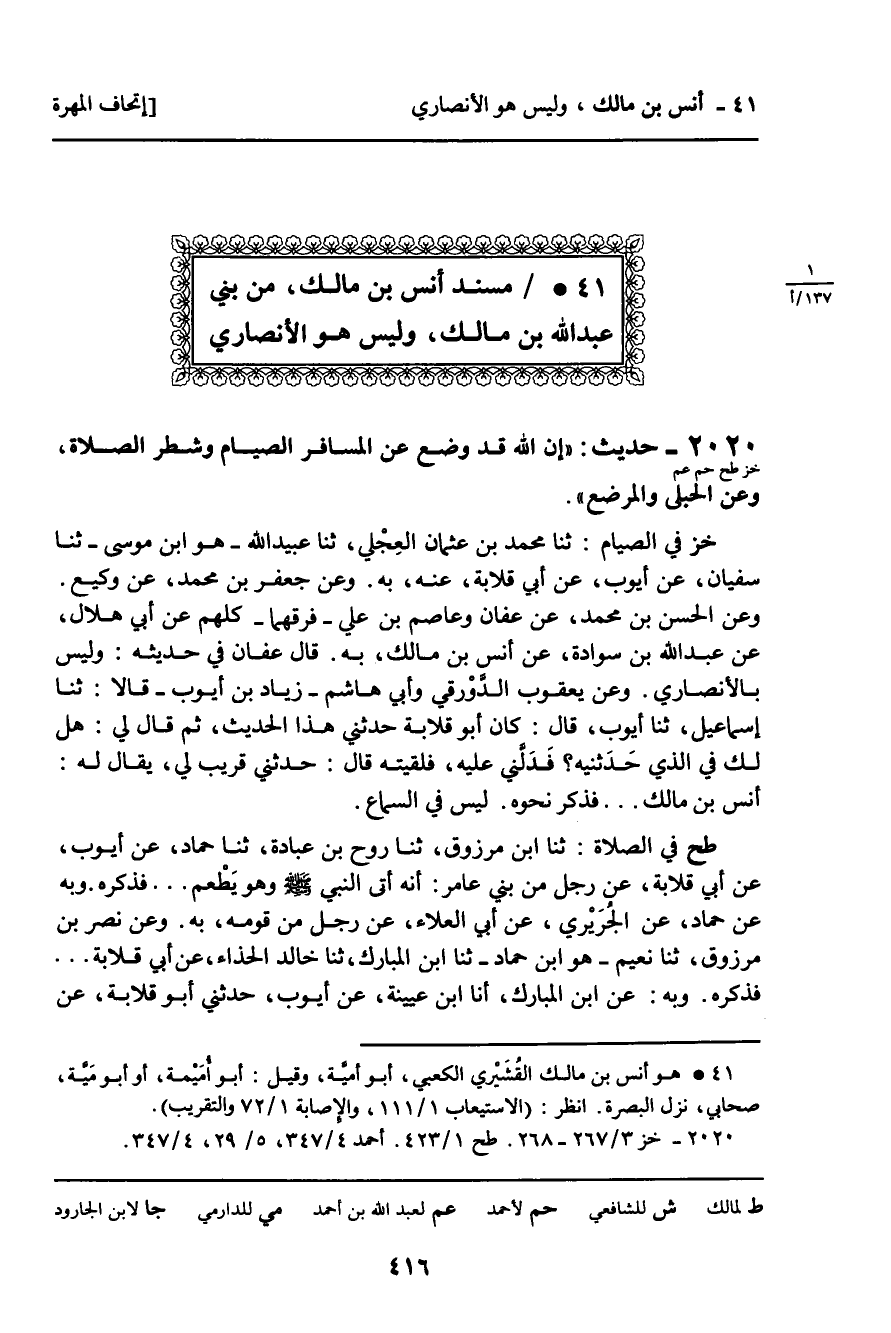 41 ـ مُسْنَدُ أَنَسِ بْنِ مَالِكٍ، مِنْ بَنِي عَبْدِ اللَّهِ بْنِ مَالِكٍ، وَلَيْسَ هُوَ الأَنْصَارِيُّ.