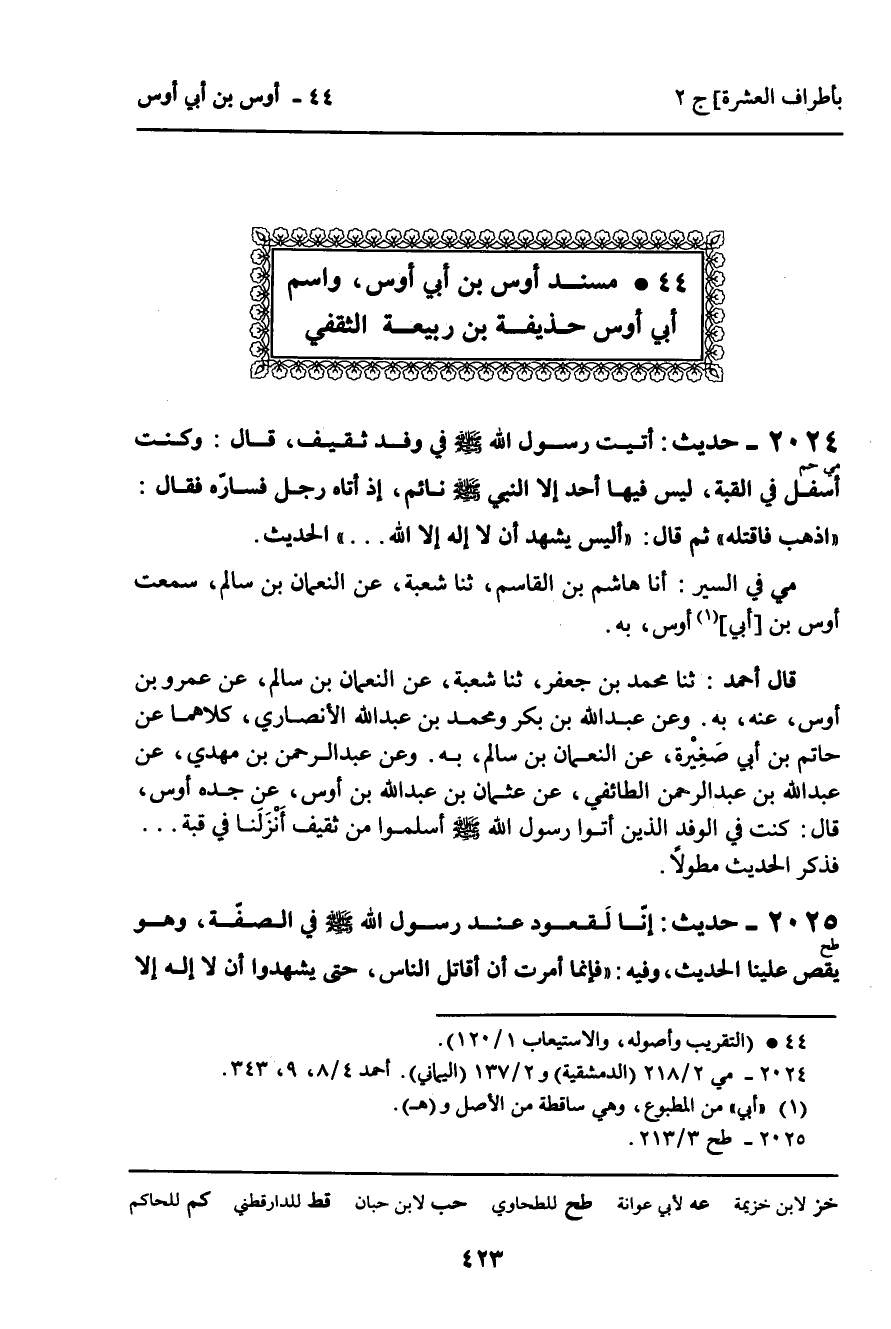 44 ـ مُسْنَدُ أَوْسِ بْنِ أَبِي أَوْسٍ، وَاسْمُ أَبِي أَوْسٍ: حُذَيْفَةُ بْنُ رَبِيعَةَ الثَّقَفِيُّ.